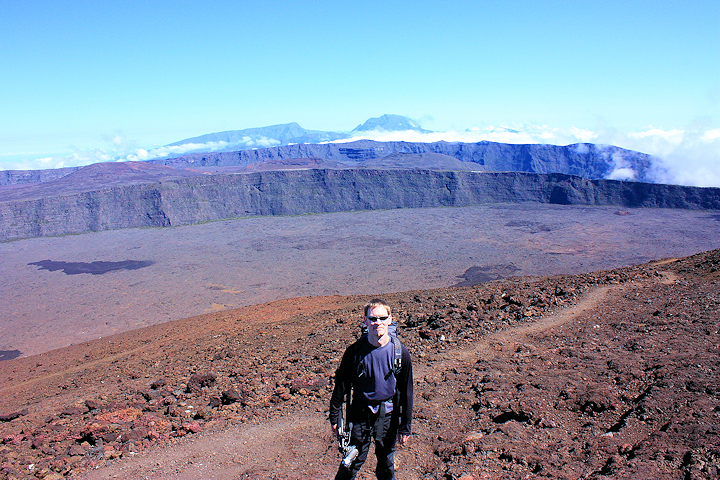 A textbook volcano on a tropical paradise island, La Réunion's stately Piton de la Fournaise offers beautiful views and excellent walking. For the best chance of a cloud-free summit, stay the night before your climb at the basic, but very amenable, Gite du Volcan, and head out early. This series of photographs was taken in September 2009.