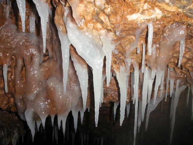 One of many wonderful arrays of semi-transparent stalactites in Upper Flood Swallet |