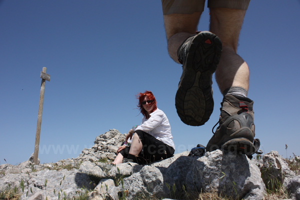 Engaging "Plan B", we drove back to Isnello and went to climb Monte Grotto Grande from the other side. A steady climb up a slightly uninspiring jeep track reached a col, and as we climbed, views across the Madonie and out to sea opened up. We continued towards Monte Grotto Grande, to find that our path had climbed well above the "summit" cross. Not wishing to lose altitude only to have to regain it, we enjoyed the views down to Isnello, before heading back down the way we had climbed.